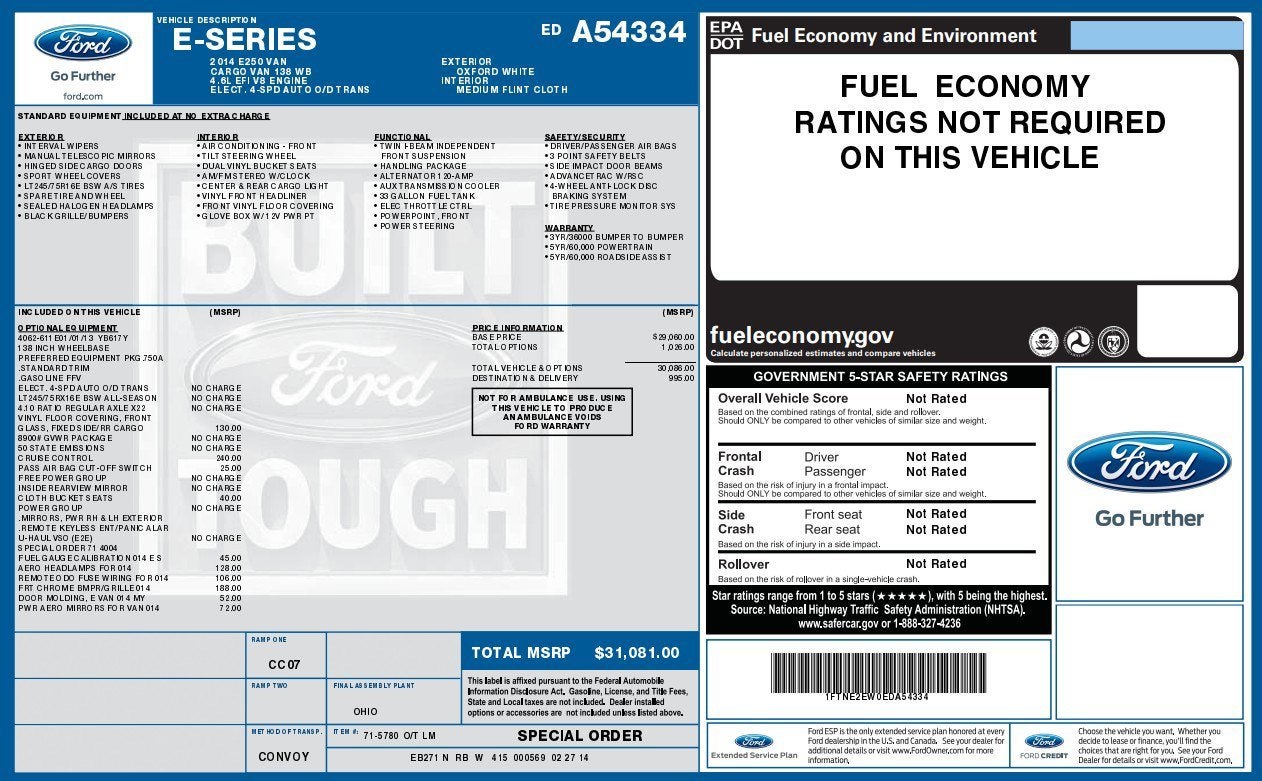- Vehicle Name: Ford Econoline Cargo Van